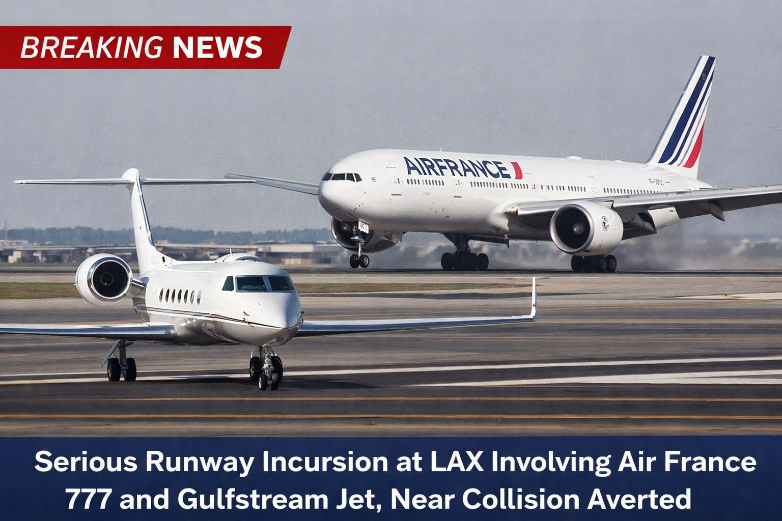 At Los Angeles International Airport (LAX), a serious runway incursion recently occurred involving an Air France Boeing 777 and a Gulfstream business jet, narrowly avoiding what could have been a tragic collision.